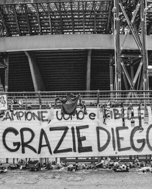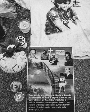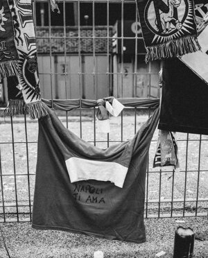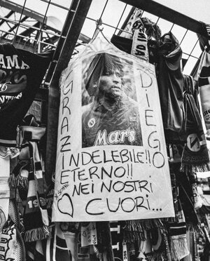 Con te vola in alto un pezzo della tua città e di tutti i Napoletani che in questi giorni hanno dato la più grande manifestazione d’affetto mai vista finora.
