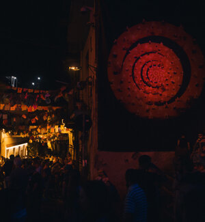 The Feast of the Lucerne takes place every four years and with its ancient magic covers the medieval village of Casamale in Somma Vesuviana with charm. It starts at sunset when a woman and a man (o' mast e festa) light the first candle. In the catacombs it was used by the early Christians to illuminate places of worship and pay homage to the deceased. In popular culture, "Lucena" represents the male and female sexual organs ('a lucerna 'e donna 'e donna Lucia has had five daughters), a symbol of reproduction and birth. However it is also a symbol of the lights of the cemetery, of the will-o'-the-wisp and in popular culture it is an instrument of connection between life and death. The lamp-holder frames, therefore, occupy every alley, along their entire depth, until they form a gallery of lights. Indeed, to make the glitter unlimited, at the end of the alley, a mirror infinitely multiplies the path, which anthropologists have interpreted as similar to that of the inevitable transition from life to death. In all popular cultures the mirror has always been considered, in its symbology, as a sort of door between two worlds: the known one (just lived) and the parallel but unknown Elsewhere one. In an instant all the narrow streets of Casamale light up with flickering light, accomplices of the suggestion hundreds of oil lamps arranged on wooden structures of every shape - every alley has one -, in a blaze of illuminated triangles, circles, rhombuses and squares per day. In fact, if we give substance to the symbolic meanings that these figures underlie, we will have that the square is a basic figure of space, a symbol of the earth and of the created universe and which recalls the foundations; we will know that the triangle is the enclosed space, defined and perfect in its magical-sacral dimension, furthermore, that with the tip up, it represents fire and the male sex, while with the tip down, water and sex female; we will also know that the rumble recalls the unleashing of primordial telluric forces and that it then refers, for survival, to the instrument that evokes thunder, therefore, by assimilation, also to the roar of the volcano. Now, by virtually setting one on top of the other the geometric figures of the Casamale, one realizes that they, accepted in their symbolic values, can actually represent, logically, the idea of the mighty, roaring, towering "Hot Mountain" from the Earth to the Sky ””. There are no less than 10 festively decorated alleyways (Coppola, Malacciso, Puntuale, Cuonzolo, Torre, Zoppo, Giudecca, Piccioli, Lentini, Perzecchiello), illuminated by more than four thousand candles. The looms are veritable recurrences of the Madonna della Neve, of the Colleggiata, the statue of the Saint is carried in procession through the streets of the village complete with a musical band and devotional songs.
