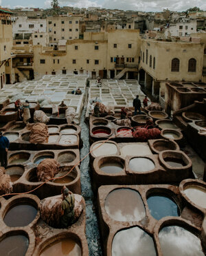Fès is the third largest city in Morocco and the oldest of the Imperial Cities. Within its medina, there are the ancient tanneries of Fès, the oldest and most extraordinary are the Concerie Chouara. Their particularity lies in the fact that the activity carried out by men has been unchanged for 1000 years. The Chouara Tanneries date back to the Middle Ages, are the oldest in the country, and have entered by law a part of the world heritage of humanity protected by UNESCO.